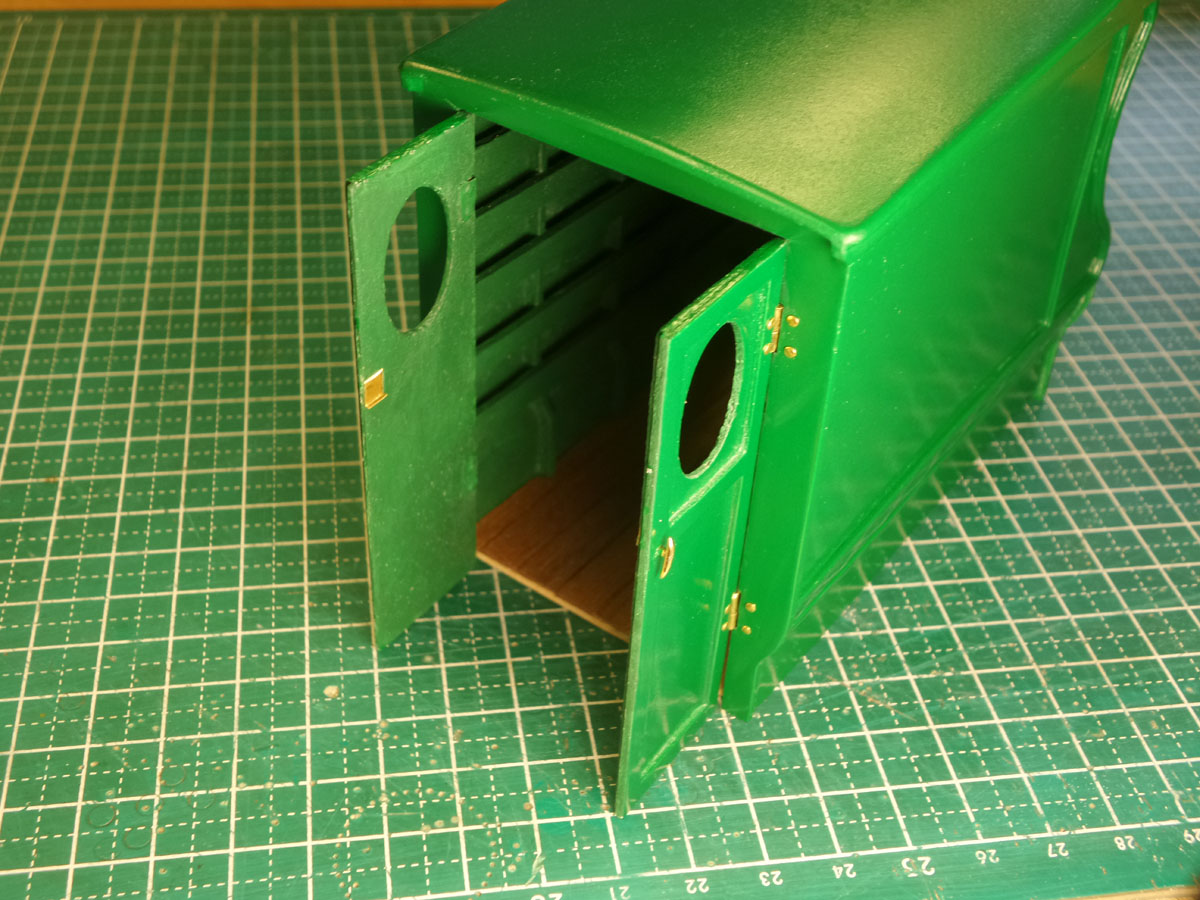 За тем закрепил двери на фургоне тем же методом. Но перед этим установил ручку.