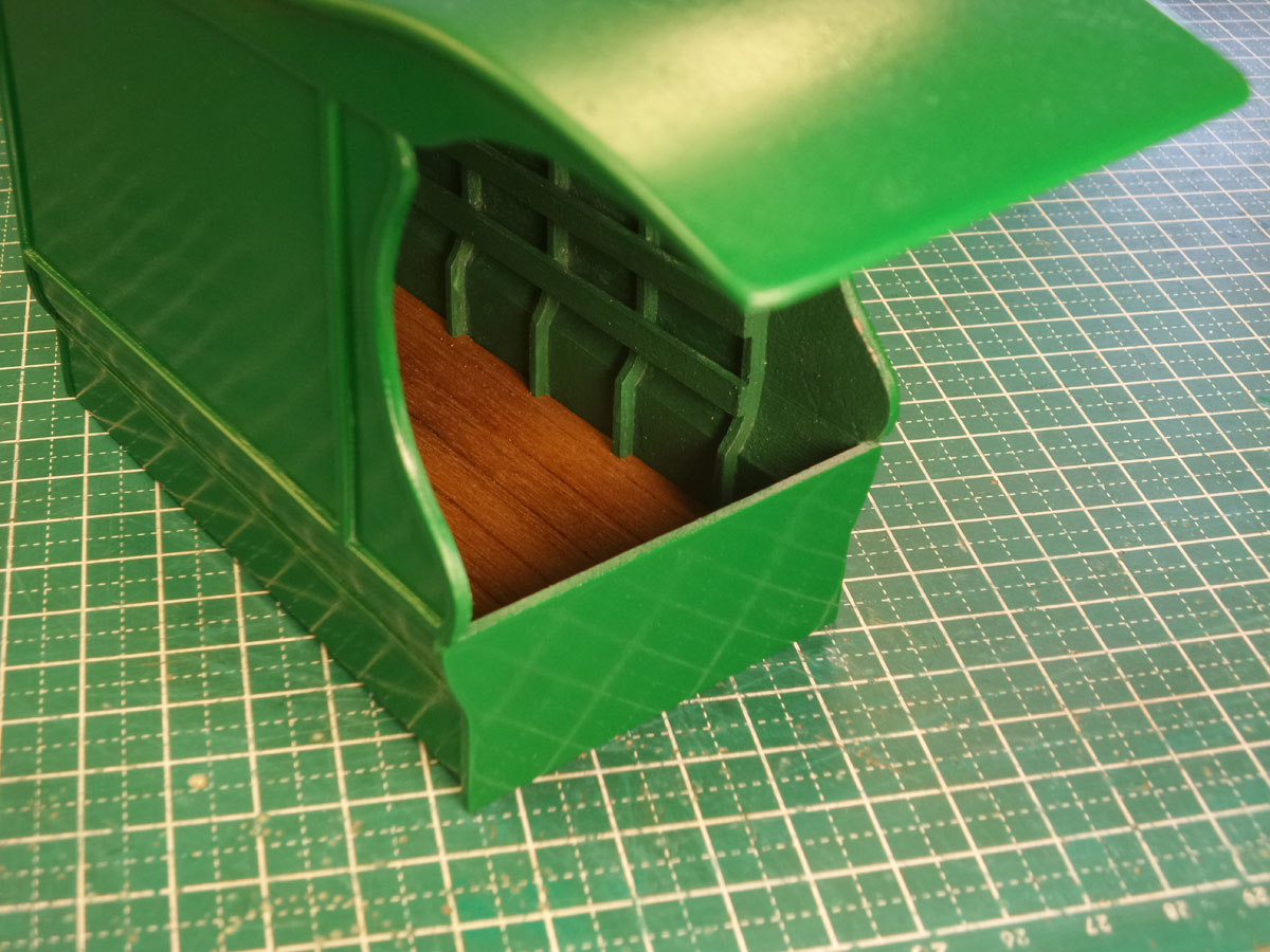 И приклеил торцевую доску спереди фургона.