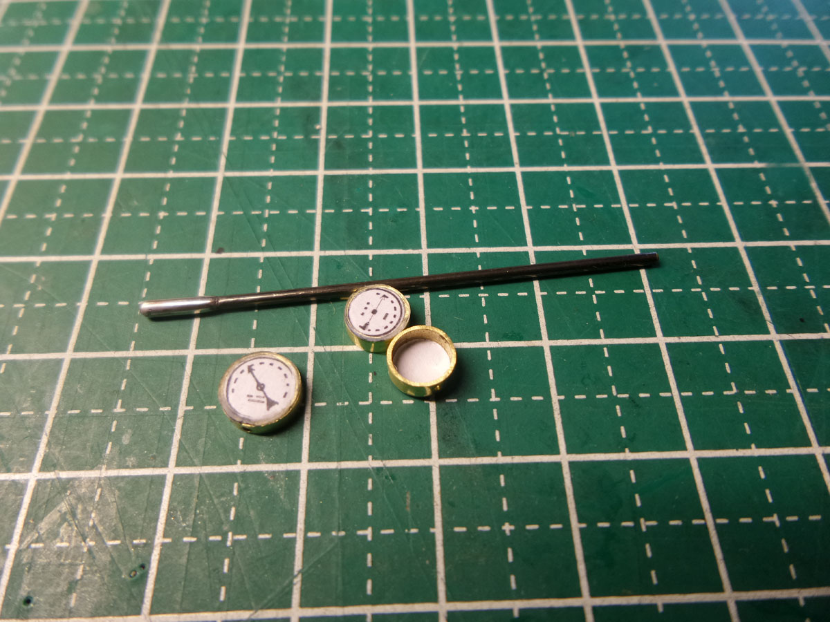 Ну и вдобавок из латунной трубки изготовил приборы. Циферблаты нарисовал в Corel и распечатал на принтере.